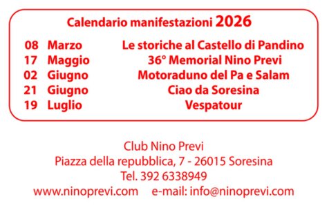Se volete ulteriori notizie su ogni singola manifestazione, non esitate a contattarci o venire a trovarci in sede il Venerdì sera.
